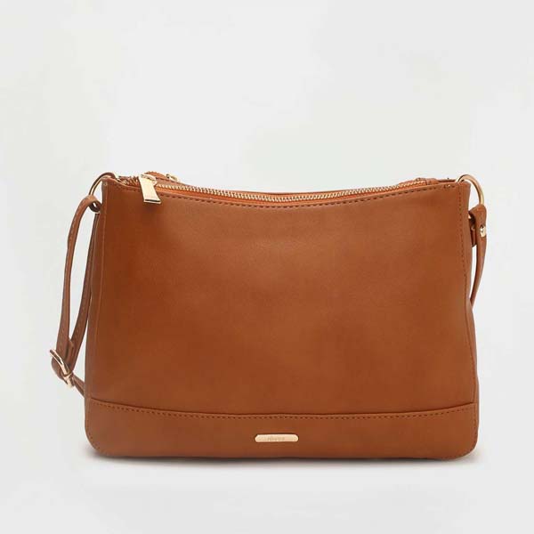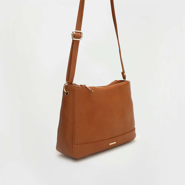 Ease your everyday carry in this sling bag that is designed in a solid fabrication with a sling strap and zipper and magnetic snap button closure.