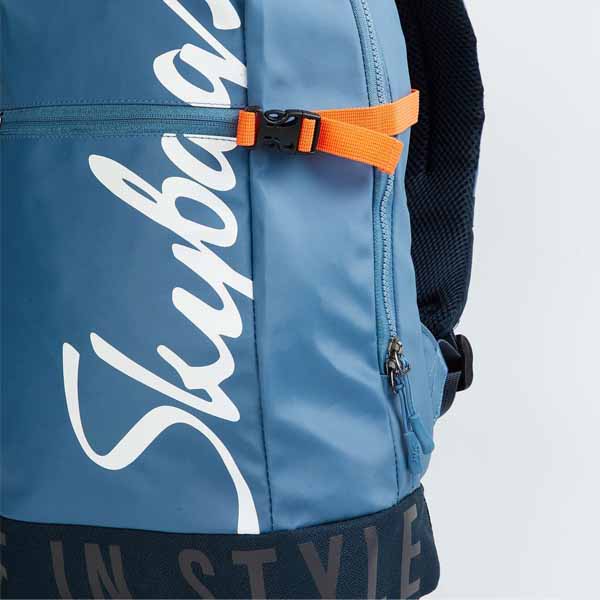 This backpack features bold signature branding and one main compartment with an internal and external zip pocket. It also comes with two stash pockets, a rain cover, and padded shoulder straps for ample comfort.