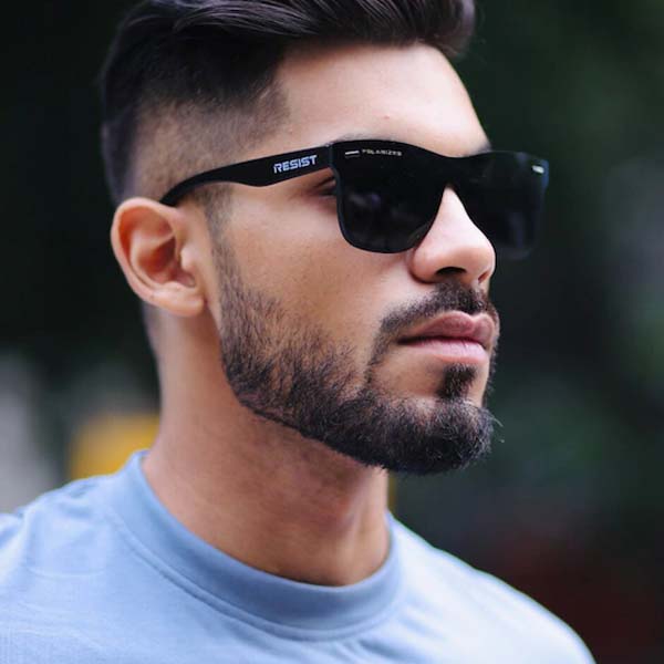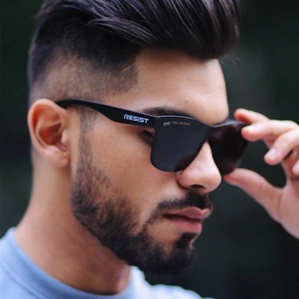 Lens Colour: black Frame Colour: black Style: rimless Type: wayfarer sunglasses Frame Material: polycarbonate Best suited for oval face Comes in a RESIST EYEWEAR soft pouch Warranty: 3 months