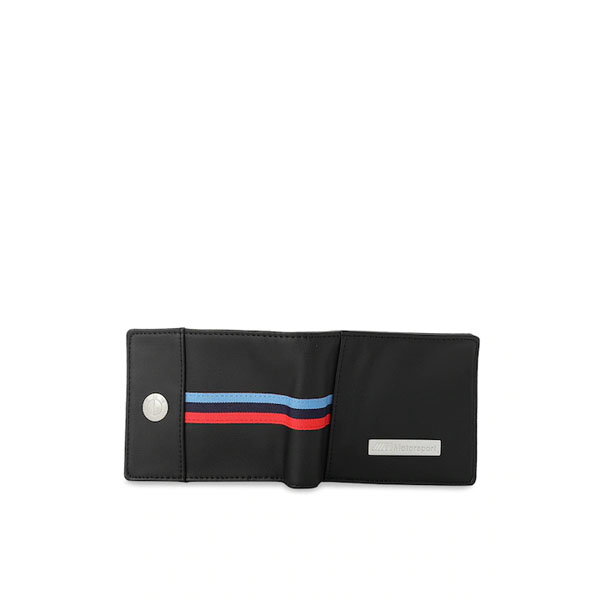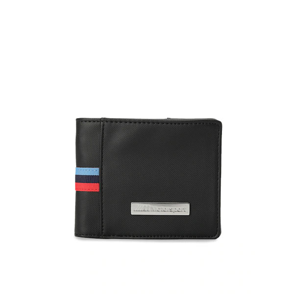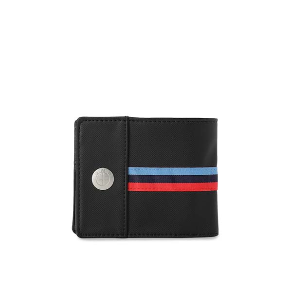 Product design details: Easy opening wallet made in Polyurethane with webbing stripes on BMW M colors, metal BMW M logo and special lining inspired by Racing flag.Black solid wallet 2 main compartment 5 card holders Warranty: 3 months Warranty provided by brand/manufacturer